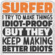 Funny Surfer Sayings "Surfer I Try To Make Things Idiot Proof But They Keep Making Better Idiots". Grab this Funny Surfing design as a funny gifts for an awesome mum, dad or friend.