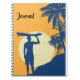 Surfer, palm tree, cliff, Sun, Moon, surfer. Beach scene with Surfer, bright orange, the sun or moon in tan and blue the dominant colours. The word JOURNAL is completely customisable and can be changed to anything you'd like or eliminated together. Makes a perfect notebook for just about anyone. Great for a Christmas gift or any time of the year. ENJOY! Dimensions: 6.5" x 8.75" -- 80 black & white lined pages. Lay flat spiral binding.