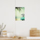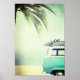 Cooles Vintage Foto mit klassischen Bus, Surfbretter & Palme.