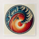 Capture the thrill of the ocean with this vibrant circular artwork featuring a bold wave under a fiery sunset.