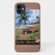 Beautiful retro style design, showing an oldtimer car with surfboard on the beach.