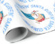 cute and funny santa wearing swimtrunks and carrying a surfboard