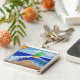 (The painting is of a green angel on an orange surfboard catching a wave. A sun glows in the background and palm tree gently sways on the beach. The wave is getting ready to crash on the beach smoothing the sandy surface. The green angel pays tribute to the Archangel Raphael whose colour is green and is known for bringing healing. The sun helps sustain life and through it plants such as palm trees strengthen and grow. The power of sun's energy is symbolised in the matched orange- yellow surfboard. The beach is clean and smooth. This painting was inspired by the "Wipe Out Cancer Angel". Instead of adding text of this painting, it was left open so you can your own wipe out, riding the wave, or other go with flow message to the beach, cloud, or sky. Proceeds from the sale of this keychain support DonnaBellas Angels, a 501(c)3 non-profit charity.