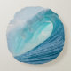 Round throw pillow with a great surfing barrel wave breaking into a big splash and turquoise colours in the best place to surf, the Pacific Ocean.
