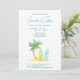 Surfing beach summer tropical wedding invitation template, with surfing boards and palm tree, all in one with rsvp on the same page.