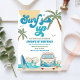 Celebrate your little ones big day with this retro surfing beach birthday invitation! Featuring playful palm trees, ocean waves, a peace-sign van, and a sunny coastal vibe, this design is perfect for a fun, tropical party theme. The colourful layout captures a groovy, carefree spirit that guests will love. Ideal for kids birthdays, summer parties, or any beach-inspired celebration, this invitation sets the tone for a memorable event.