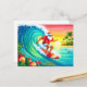 Ride the holiday wave with Santa! This cheerful watercolor postcard shows Santa Claus surfing through turquoise waves in a festive Hawaiian shirt — the perfect tropical Christmas greeting for beach lovers and golfers alike.