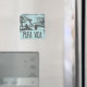 Costa Rica travel souvenir magnet featuring a graphic blue and grey surfer pura vida design.