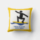 Surfing gifts, surfer on his surfboard custom gift design featuring a minimalist black icon of a surfer standing up on his yellow surfboard over a blue wave and a yellow border around. This cool design is a template and it is completely customisable. Personalise it and change text with monogram, name or your message. The perfect gift ideas for the surfer. See lots of designs at our Sports Gifts store.