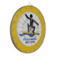 Surfing gifts, surfer on his surfboard custom gift design featuring a minimalist black icon of a surfer standing up on his yellow surfboard over a blue wave and a yellow border around. This cool, modern design is a template and it is completely customisable. Personalise it and change text with monogram, name or your message. The perfect gift ideas for the surfer. See lots of designs at our Sports Gifts store.