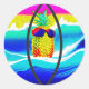 SURFING PINEAPPLE BEACH BALL CLASSIC ROUND STICKER