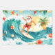 Surfing Santa Claus Wrapping Paper Sheet