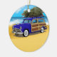 Surfing Woodie with Christmas Tree Ceramic Ornament