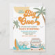Make waves with this retro beach and surf themed birthday invitation, perfect for celebrating your little ones big milestone. Featuring playful palm trees, ocean waves, a surfboard, and a groovy van, this cheerful design sets the tone for a fun seaside party. Bright colours and nostalgic details create a festive vibe that guests will love. Ideal for tropical, summer, or coastal celebrations, this invitation is both stylish and memorable.