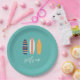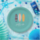 Surfs UP boy surfboard beach birthday party plates.