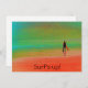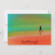 Digitally altered photo of a surfer standing on the beach looking out at the Atlantic in Cornwall, England, UK