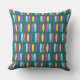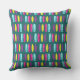 Surfs up colourful surfboard patterned throw pillow. Lines of brightly coloured surfboards on a dark teal background. Great gift for anyone from professional surfers to those that simply loves to surf as a hobby. You can change the background colour from dark teal, to whatever suits your taste.