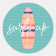 Surfs Up Pink surfboard and waves Birthday Party Classic Round Sticker