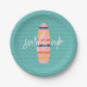 Surfs Up Pink surfboard and waves Birthday Party Paper Plate