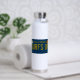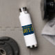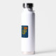 This unique water bottle will take you back in time to the year 1969 with this retro-inspired California license plate design. Bold embossed-look yellow text with the custom tag number "SURFS UP" pops on the blue contrast. The vintage style lettering, tag stickers and panhead screws bring a nostalgic vibe. Perfect for surfers, beach bums and lovers of vintage art, this bottle will keep you hydrated. Stay salty!
