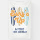 Surf's Up! surfboards beach birthday banner in navy blue and light blue.