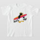 100% cotton so perfect for summer, It is a nicely designed t-shirt, the fabric is soft and the seams finished well, the body of the t shirt has no side seams. I bought a medium size for my two grandsons, aged 9 and 8 it will be slightly big on them but I would rather that than too small