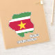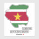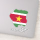 Suriname Flag Map Sticker in the outline of the Suriname map. The map is infused with the pattern and the colours from the Suriname national flag. Small stickers with the country name are also included. Text is fully customisable using "Customise it!" feature. Suriname map sticker is the perfect sticky gift that can be placed anywhere your heart desire. © 2021 CoutriesOfTheWorld
