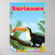 Suriname south american toucan cartoon vacation poster.