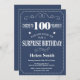 Surprise 100th Birthday Invitation Blue and White Typography. Blue and White Background. Adult Birthday. Male Men or Women Birthday. Kids Boy or Girl Lady Teen Teenage Bday Invite. 13th 15th 16th 18th 20th 21st 30th 40th 50th 60th 70th 80th 90th 100th. Any Age. For further customisation, please click the "Customise it" button and use our design tool to modify this template.