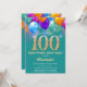 Surprise 100th Birthday Teal and Gold Colourful Balloons and Confetti Invitation. For further customisation, please click the "Customise it" button and use our design tool to modify this template.