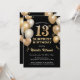 Surprise 13th Birthday Black and Gold Balloons Invitation