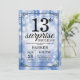 Surprise 13th Birthday Invitation with Blue String Lights with Blue Glitter Background. Blue Birthday. Kids Birthday. Boy or Girl Bday Invite. 13th 15th 16th 18th 20th 21st 30th 40th 50th 60th 70th 80th 90th 100th, Any age. For further customisation, please click the "Customise it" button and use our design tool to modify this template.