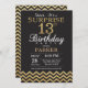 Surprise 13th Birthday Invitation with Gold Glitter Chevron. Chalkboard. Black and Gold Glitter. Kids Birthday. Boy or Girl Bday Invite. For further customisation, please click the "Customise it" button and use our design tool to modify this template.