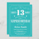Surprise 13th Birthday Invitation Teal and White Typography. Teal Background. Kids Birthday. Male Men or Women Birthday. Kids Boy or Girl Lady Teen Teenage Bday Invite. 13th 15th 16th 18th 20th 21st 30th 40th 50th 60th 70th 80th 90th 100th. Any Age. For further customisation, please click the "Customise it" button and use our design tool to modify this template.