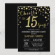 Surprise 15th Birthday Black and Gold Diamond Invitation