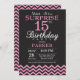 Surprise 15th Birthday Black and Pink Chevron Invitation