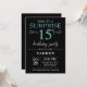Surprise 15th Birthday Invitation with Black and Teal Glitter Background. Chalkboard. Kids Birthday. Boy or Girl Lady Teen Teenage Bday Invite. Any age. For further customisation, please click the "Customise it" button and use our design tool to modify this template.
