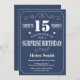 Surprise 15th Birthday Invitation Blue and White Typography. Blue Background. Kids Birthday. Male Men or Women Birthday. Kids Boy or Girl Lady Teen Teenage Bday Invite. 13th 15th 16th 18th 20th 21st 30th 40th 50th 60th 70th 80th 90th 100th. Any Age. For further customisation, please click the "Customise it" button and use our design tool to modify this template.