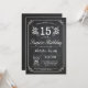 Surprise 15th Birthday Invitation with Rustic Chalkboard Background and Floral Flower Pattern, Black and White. Adult Birthday. Male Men or Women Birthday. Kids Boy or Girl Lady Teen Teenage Bday Invite. 13th 15th 16th 18th 20th 21st 30th 40th 50th 60th 70th 80th 90th 100th. Any Age. For further customisation, please click the "Customise it" button and use our design tool to modify this template.