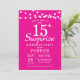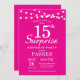Surprise 15th Birthday Invitation with String Lights. Hot Pink Background. Kids Birthday. Girl Female Lady Elegant Modern bday. 13th 15th 16th 18th 20th 21st 30th 40th 50th 60th 70th 80th 90th 100th, Any age. For further customisation, please click the "Customise it" button and use our design tool to modify this template.