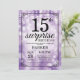 Surprise 15th Birthday Invitation with Purple String Lights with Purple Glitter Background. Purple Birthday. Kids Birthday. Boy or Girl Bday Invite. 13th 15th 16th 18th 20th 21st 30th 40th 50th 60th 70th 80th 90th 100th, Any age. For further customisation, please click the "Customise it" button and use our design tool to modify this template.