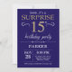 Surprise 15th Birthday Navy Blue and Gold Glitter Invitation