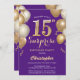 Surprise 15th Birthday Purple and Gold Balloons Invitation
