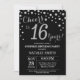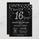 Surprise 16th Birthday Black and Silver Diamond Invitation