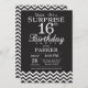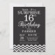 Surprise 16th Birthday Invitation with Black and White Chevron. Chalkboard. Kids Birthday. Boy or Girl Bday Invite. For further customisation, please click the "Customise it" button and use our design tool to modify this template.