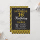 Surprise 16th Birthday Invitation with Black and Yellow Chevron. Chalkboard. Kids Birthday. Boy or Girl Bday Invite. For further customisation, please click the "Customise it" button and use our design tool to modify this template.