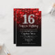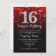Elegant black red design with faux glitter silver. Adult birthday. Features diamonds, bokeh lights and script font. Men or women bday invite. Perfect for a stylish birthday party. Message me if you need further customization.