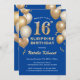 Surprise 16th Birthday Blue and Gold Balloons Invitation