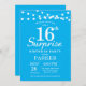 Surprise 16th Birthday Invitation with String Lights. Blue Background. Kids Birthday. Boy or Girl Birthday. 13th 15th 16th 18th 20th 21st 30th 40th 50th 60th 70th 80th 90th 100th, Any age. For further customisation, please click the "Customise it" button and use our design tool to modify this template.