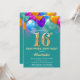 Surprise 16th Birthday Teal and Gold Balloons Invitation